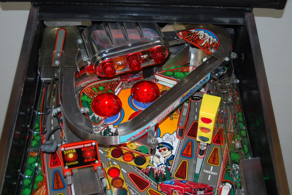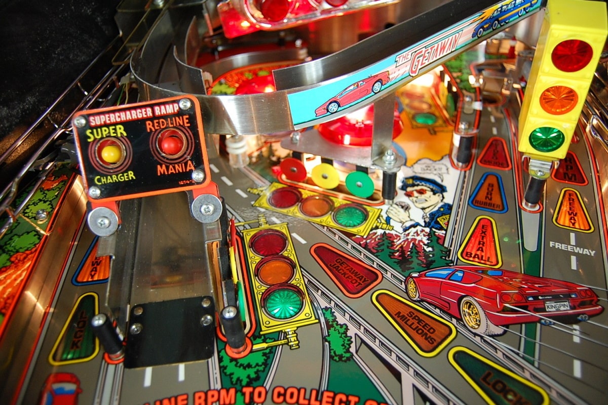 Nasz wyjątkowy flipper wyścigowy na wynajem przenosi zawodników do wnętrza sportowego FERRARI, którym bandyci uciekają przed policyjnym pościgiem. Pojazd rozpędzamy przy pomocy kuli, biegi zmieniamy za pomocą drążka… Zabawa rozpoczyna się od 1 biegu, który kolejno zmieniamy, kiedy w centralnej części automatu zręcznościowego zapala się pomarańczowy napis „Shift”. Kierowca może dodatkowo kontrolować wysokość obrotów silnika, które wyświetlane są na blacie w formie półkola.