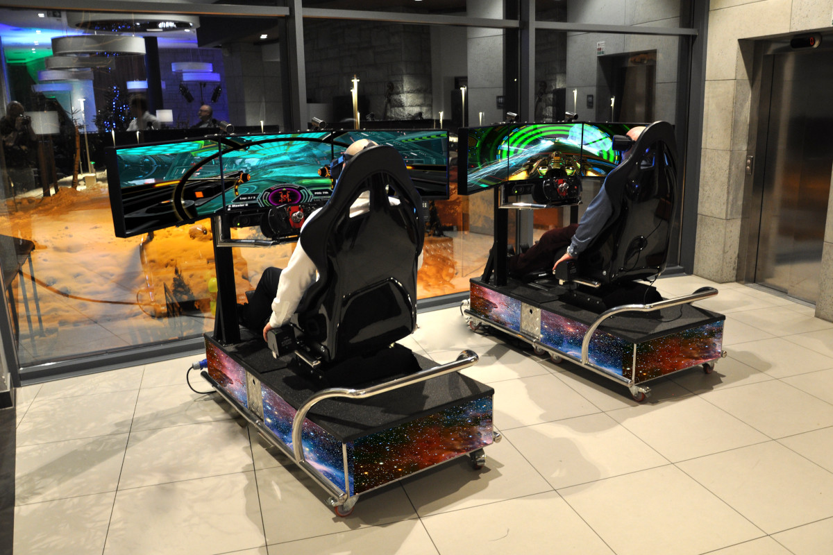Ruchome platformy 5D VR to doskonałe atrakcje na integrację pracowników w biurze, do chillout room w firmie, a także na wszelkiego rodzaju imprezy i eventy. Nasze symulatory wirtualnej rzeczywistości to multi-urządzenia, dzięki którym można oderwać się od codzienności. Możemy na nich ścigać się samochodem wyścigowym, latać samolotem, jeździć po mieście przestrzegając przepisów ruchu drogowego, przeżyć niezapomnianą przygodę prowadząc statek kosmiczny lub zatracić się w różnorodnej scenerii filmów panoramicznych. Ponadto, możemy doświadczyć przejażdżki na rollercoasterze. Każdy uczestnik wydarzenia znajdzie coś dla siebie, a to jeszcze nie wszystko! Wielofunkcyjność urządzenia pozwala na zmianę gry w dowolnym momencie trwania eventu, nawet co 2 godziny. Proponujemy wynajem atrakcji nie tylko do biura i game room, czy strefy relaksu w firmie, ale również na większe spotkania pracownicze lub biznesowe. Nasze symulatory bez trudu zmieszczą się w windzie i drzwiach każdego budynku.